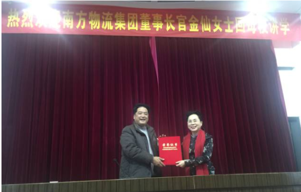 国民营经济十大风云人物、董事长官金仙日前回到母校讲学。大会由潘云翔校长主持,全体师生、全场听众对官金仙的讲学表示最热烈的欢迎。